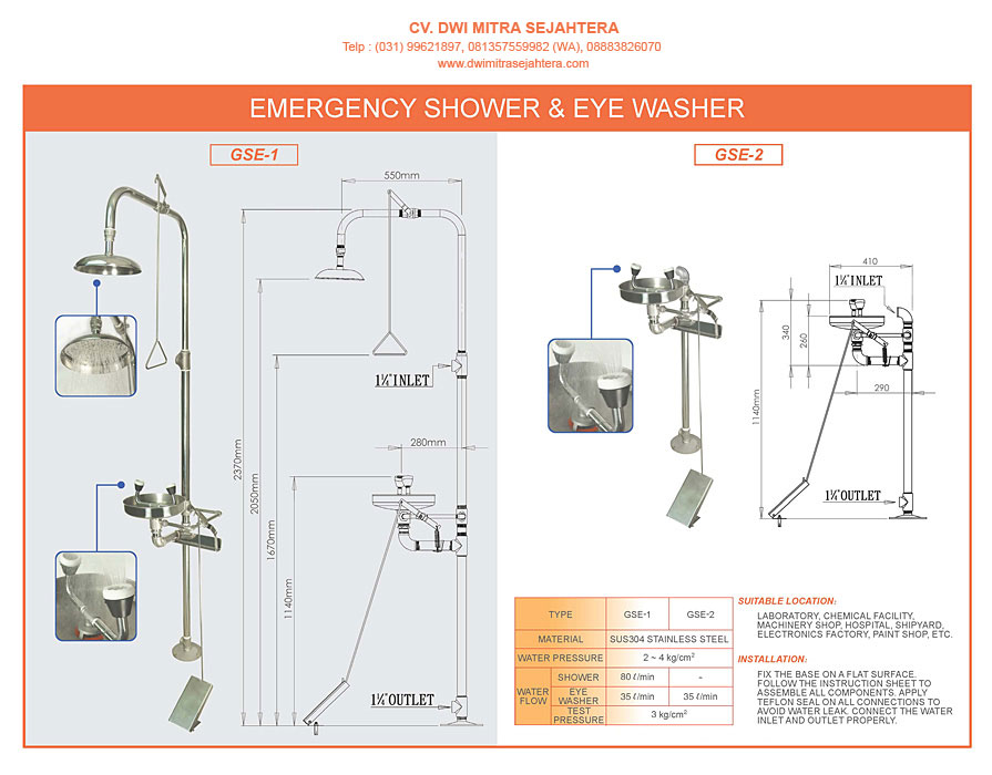 CV. DWI MITRA SEJAHTERA – Tlp (031) 99621897, 081357559982 (WA), 08883826070, Distributor, Supplier Jual & Harga Emergency Shower & Eye Washer Murah Di Surabaya, Sidoarjo, Jakarta dan Seluruh Indonesia . Kami melayani penjualan alat laboratorium di Surabaya, Gresik, Sidoarjo, Malang, Jogya, Bandung, Jakarta dan seluruh wilayah Indonesia.